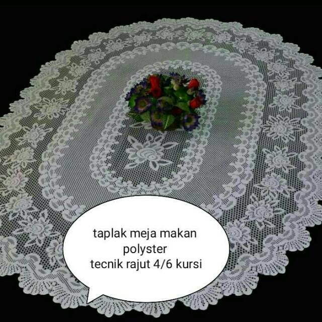 Taplak meja makan oval polyster import tecnik rajut uk 4/6 kursi | Shopee Indonesia