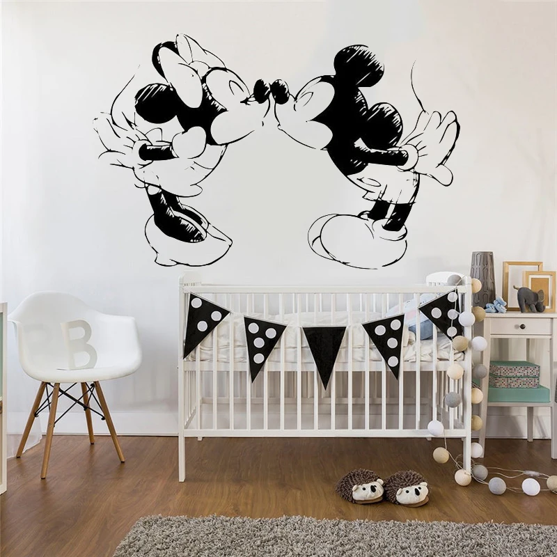 Kissing Mickey Minnie Mouse Stiker Dinding Anak anak Kamar Nursery Dekorasi Sketsa Gambar Pola Vinyl Stiker Dinding Minnie Mouse Seni AJ520|Wall Stickers| - AliExpress