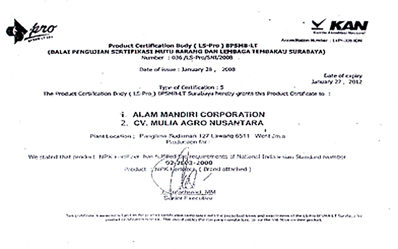 Surat Keterangan Sertifikasi dan Pengujian | PT. DAMAI AGRO MANDIRI