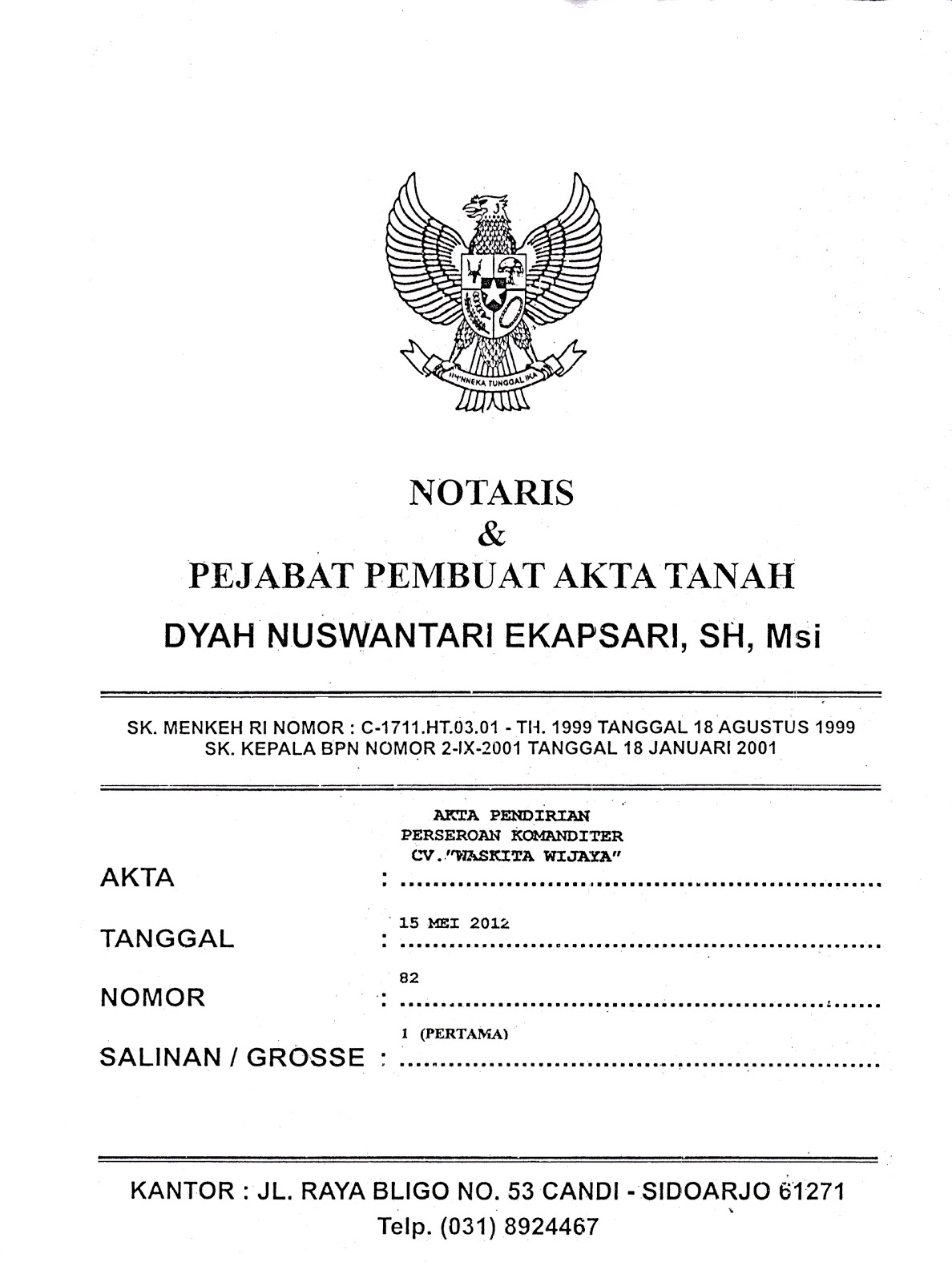 CV. WASKITA WIJAYA: Kelengkapan CV. Waskita Wijaya