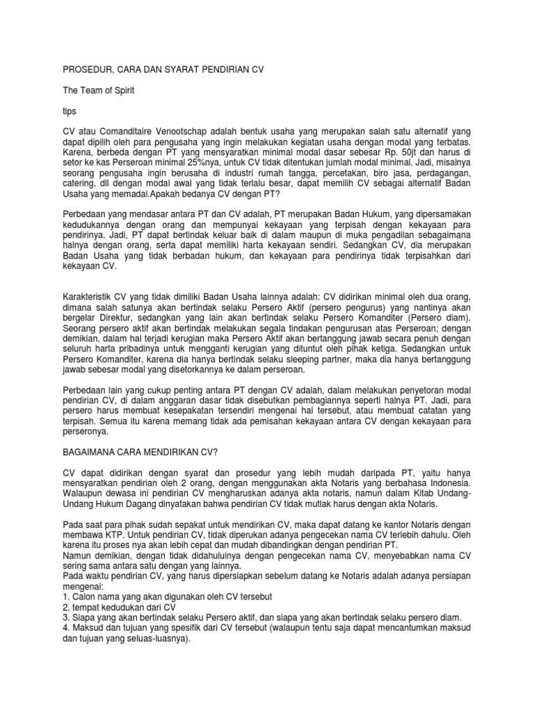 DOC) HUKUM PERUSAHAAN - PROSES DAN SYARAT CV (PERSEKUTUAN KOMANDITER) DAN FIRMA | Deniz Arshavin - Academia.edu