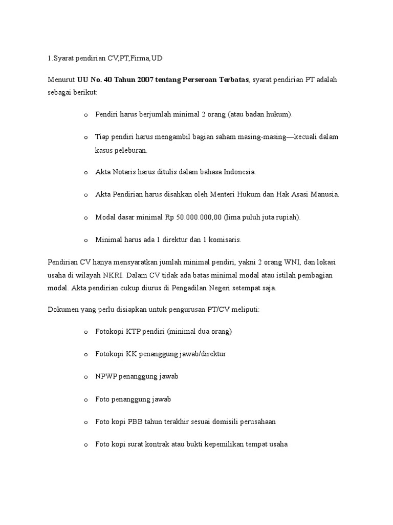 Syarat Pendirian Cv Menurut Undang Undang