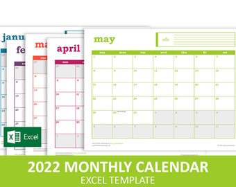 Easy Event Calendar 2020 Excel Template Printable Monthly | Etsy