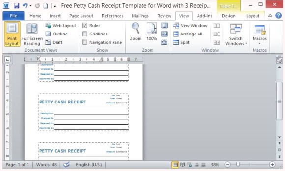 Gratis Penerimaan Kas Kecil Template Untuk Firman Dengan 3 Penerimaan Per Halaman