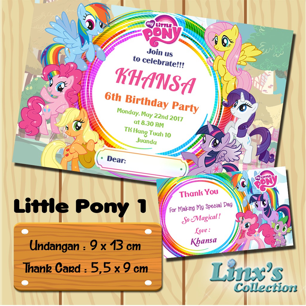 1 set undangan Ultah Anak /Kartu souvenir/topi ulang tahun My Little Pony | Shopee Indonesia