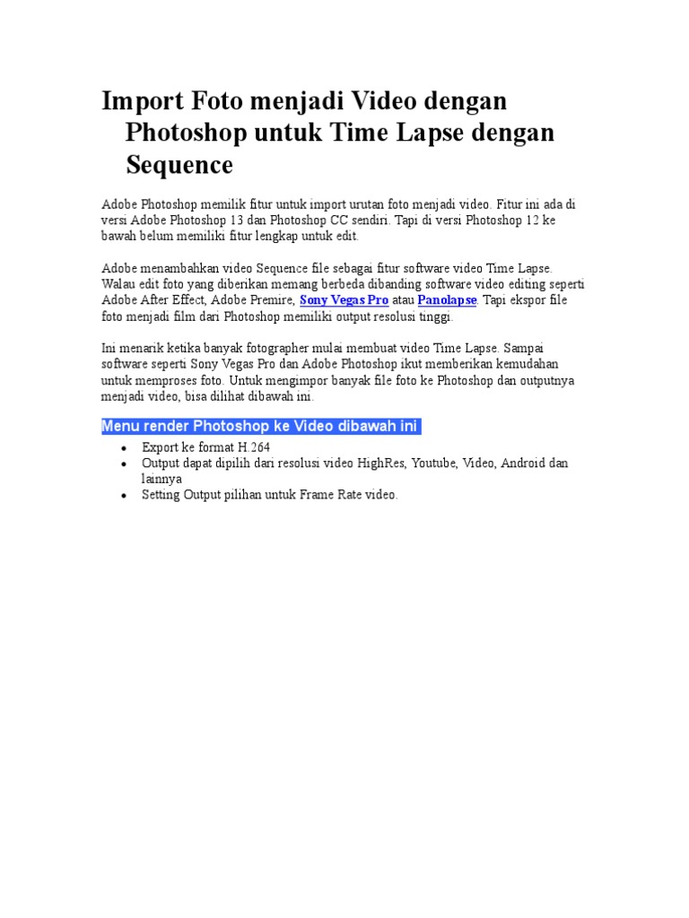 Import Foto menjadi Video dengan Photoshop untuk Time Lapse dengan Sequence