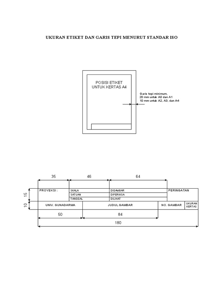 UKURAN ETIKET DAN GARIS TEPI MENURUT ETIKET…POSISI ETIKET UNTUK KERTAS A4 Garis tepi minimum, 20 mm untuk A0 dan A1 10 mm untuk A2, A3, dan A4. Title: UKURAN ETIKET DAN GARIS