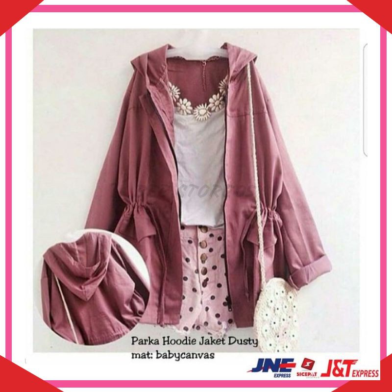 BE184 PARKA HOODIE JAKET WANITA BAHAN BABY CANVAS PREMIUM | Shopee Indonesia