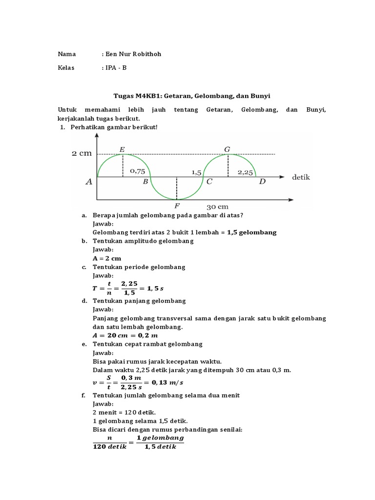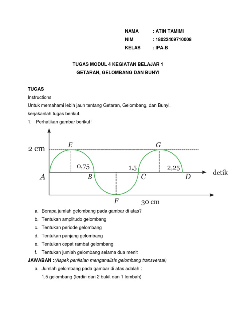 2 cm0,751,52,25detik30 cma. Berapa jumlah gelombang pada gambar di atas?b. Tentukan amplitudo gelombangc. Tentukan periode gelombangd.