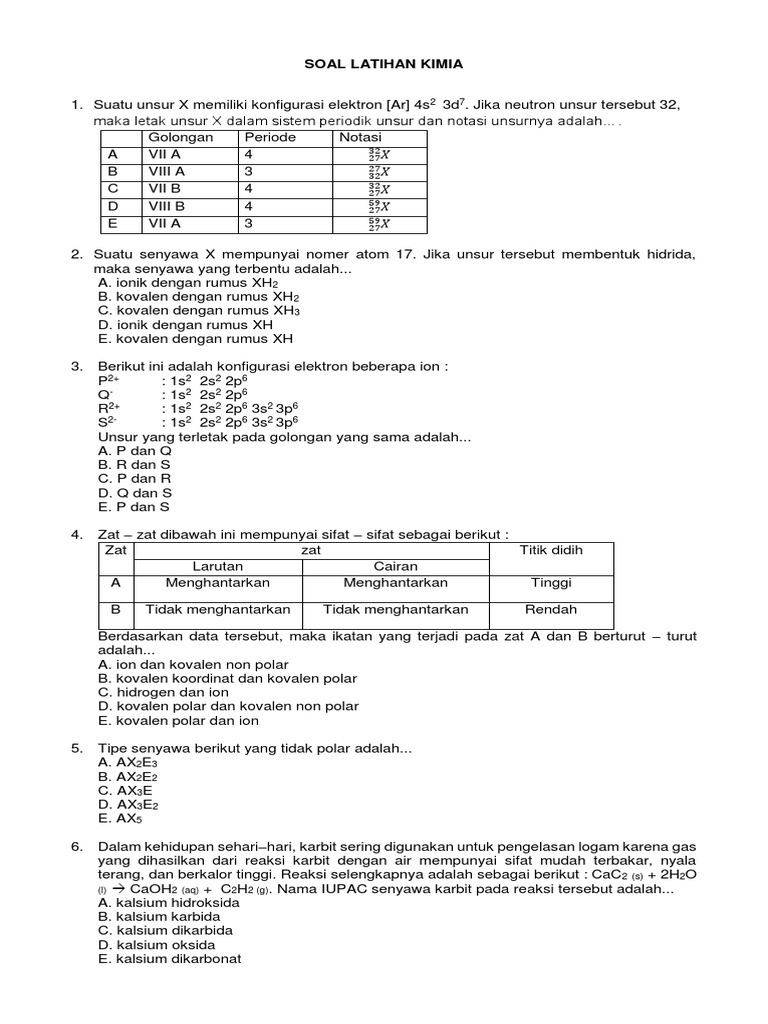 Soal Latihan Kimia