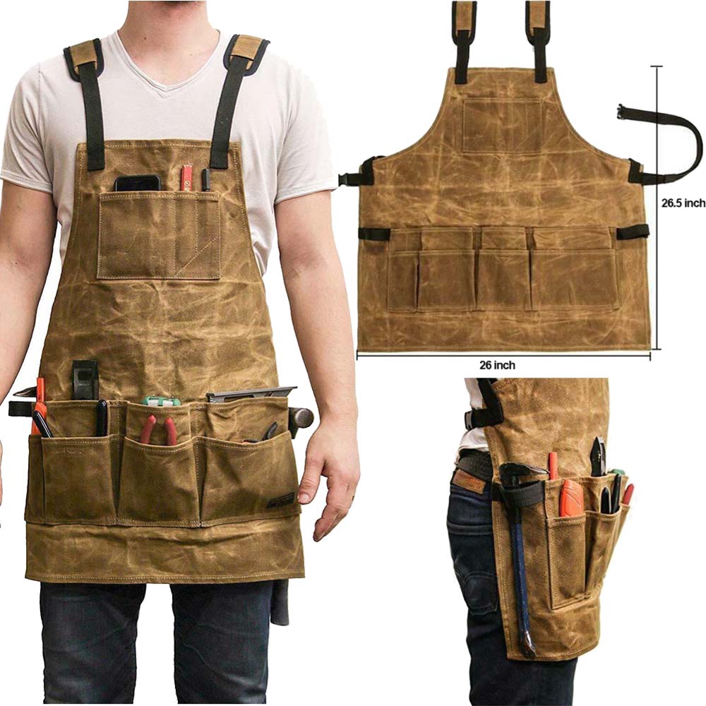 Amazon.com: MOXIN Waxed Canvas Carpenter Apron Unisex with Waterproof Function Versatile Adjustable Cross-Back Straps Soft and Ventilated Suit for Kitchen Garden Pottery Craft Work,Brass: Sports & Outdoors