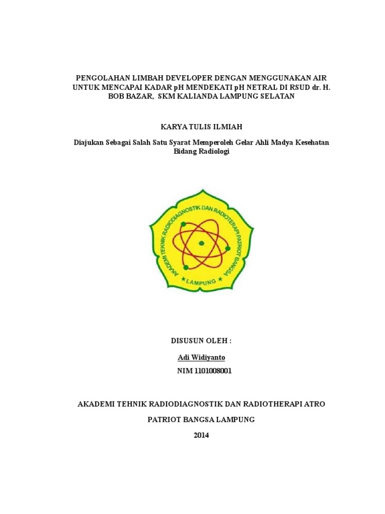 DOC) STUDY REJECT ANALISIS PADA 4 INSTALASI RADIOLOGI RUMAH SAKIT PEMERINTAH DAN SWASTA DI BANDAR LAMPUNG.docx | Yoga Saputra - Academia.edu