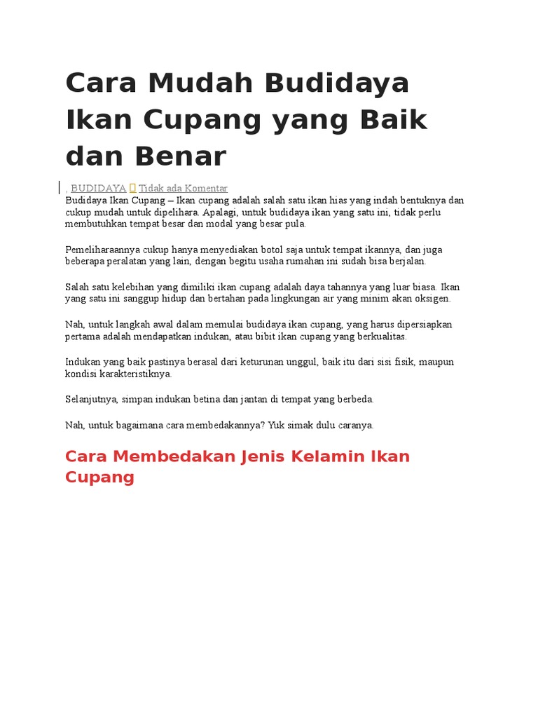 DOC) Cara Mudah Merawat Dan Ternak Ikan Cupang | Deo Wibawa - Academia.edu