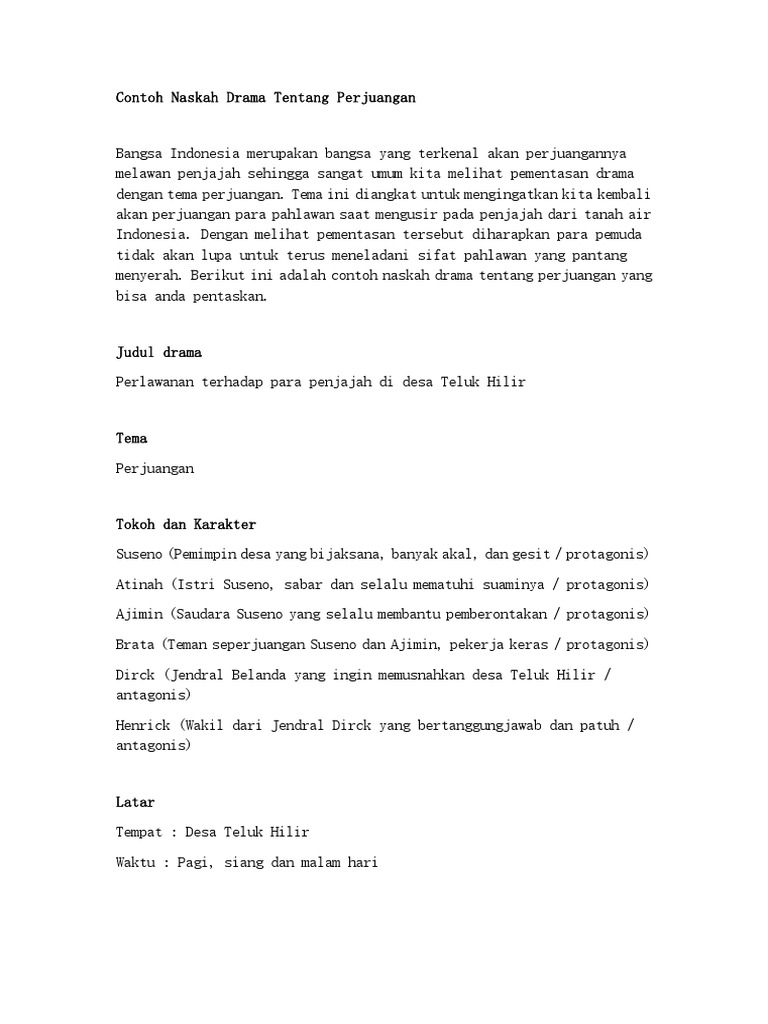 Contoh Naskah Drama Tentang Perjuangan