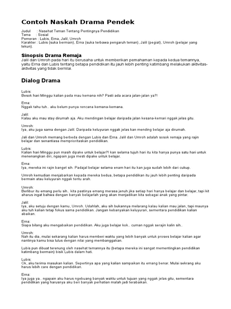 DOC) Contoh Teks Naskah Drama | Benny Syauqi - Academia.edu