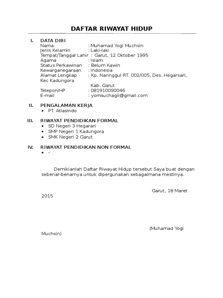 DOC) Contoh Daftar Riwayat Hidup | silvia A M M Y feronica - Academia.edu