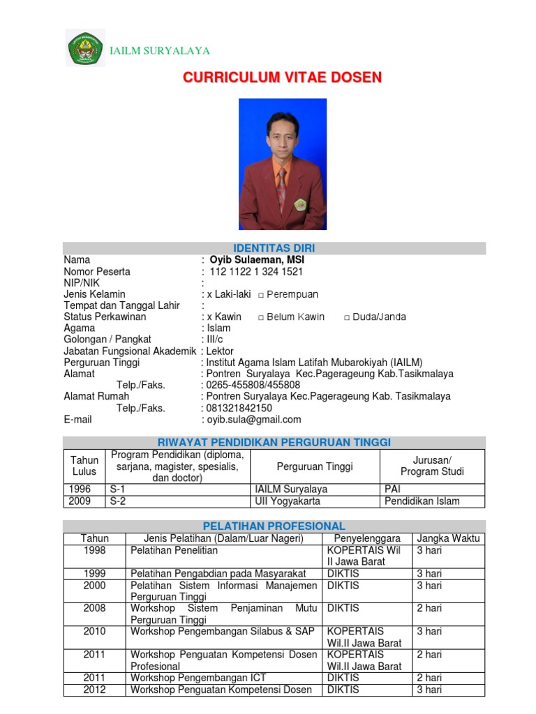 Contoh Curriculum Vitae Dosen - Gawe CV