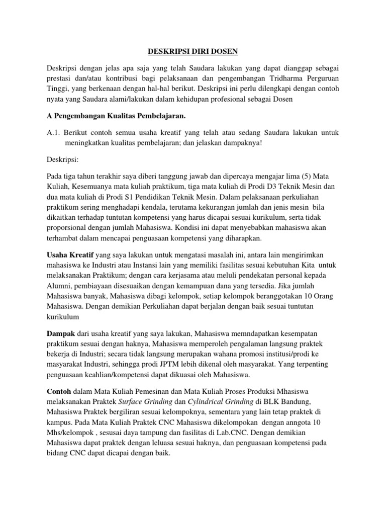 Contoh Deskripsi diri Serdos Kemenag
