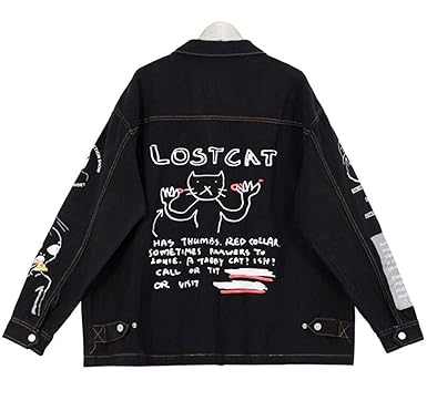 Cetak Grafiti Hitam Jaket Denim Pria Jaket Jalan Jean COD | Shopee Indonesia