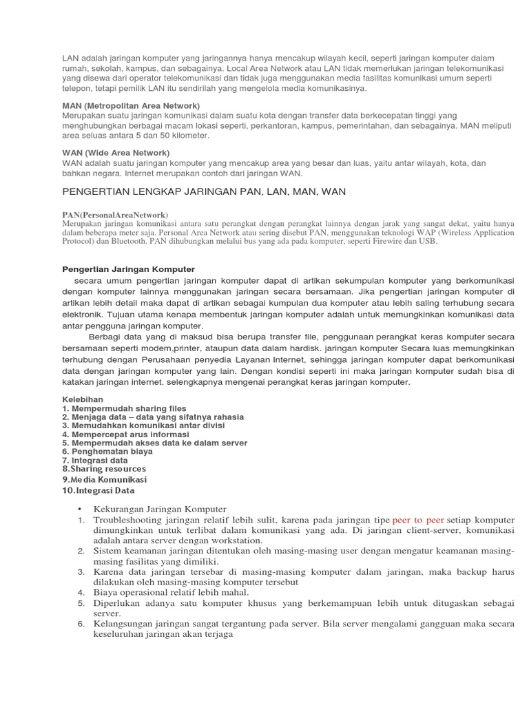 Apa kelebihan dan kekurangan dari LAN, MAN dan WAN? - Sistem Komputer - Dictio Community