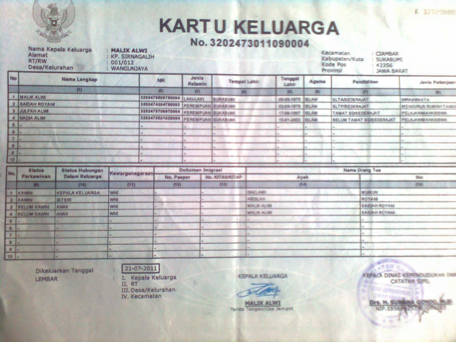 Contoh KARTU KELUARGA ASLI KK | Mail Chaozkhaky | Kartu, Pemerintah, Kelahiran