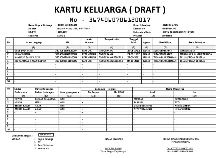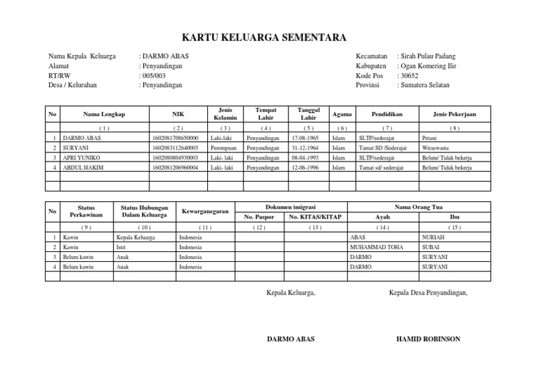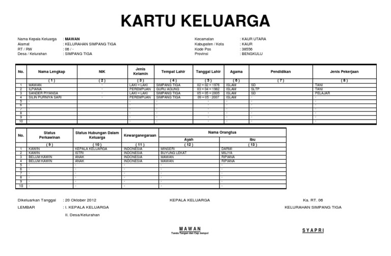 Contoh Kartu Keluarga