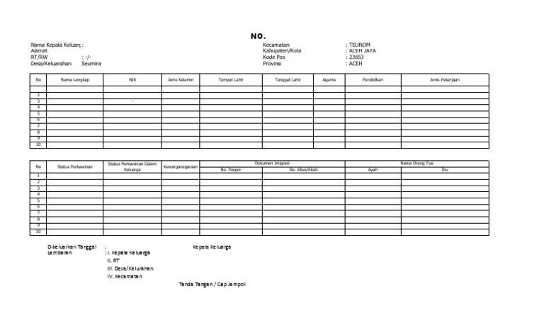 Kartu Keluarga Kosong Palangka Aldy