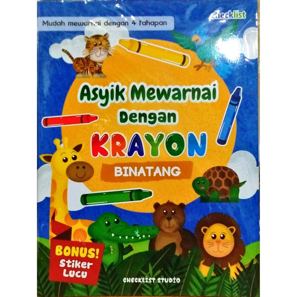ASYIK MEWARNAI DENGAN KRAYON: BUAH-BUAHAN & BINATANG + STIKER LUCU / CHECKLIST STUDIO/ BUKU MEWARNAI | Shopee Indonesia