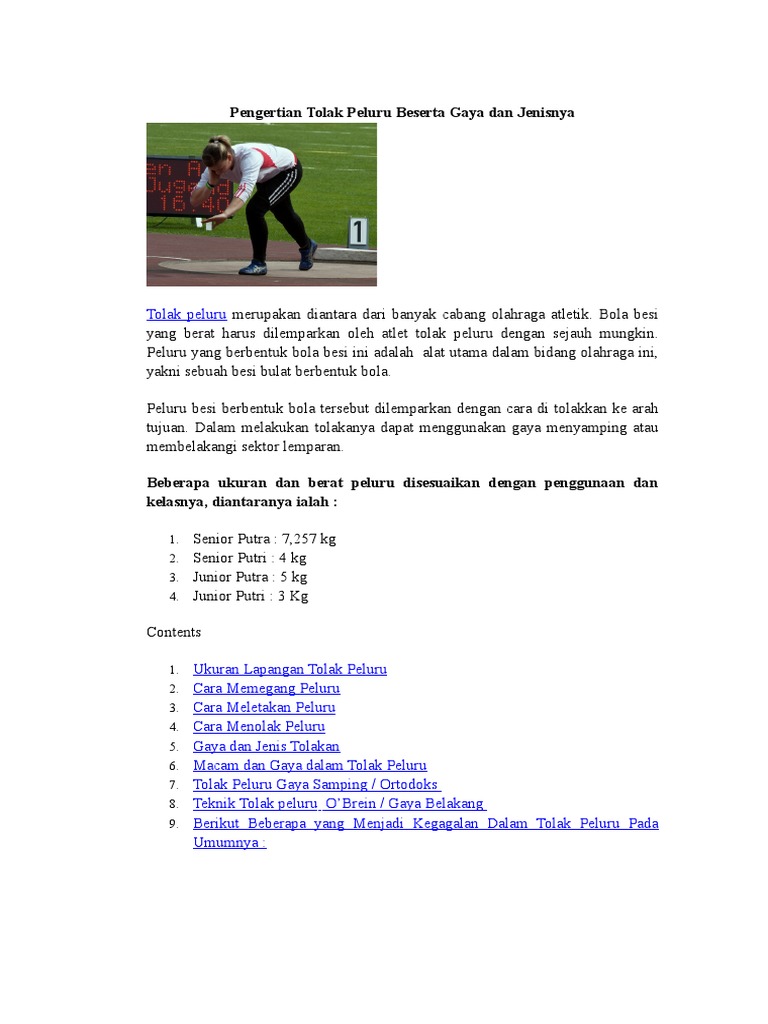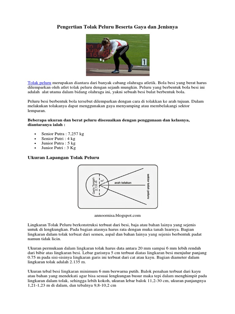 Tolak Peluru: Sejarah, Gaya dan Lapangan tolak peluru materi kelas X - Perangkat Penjas