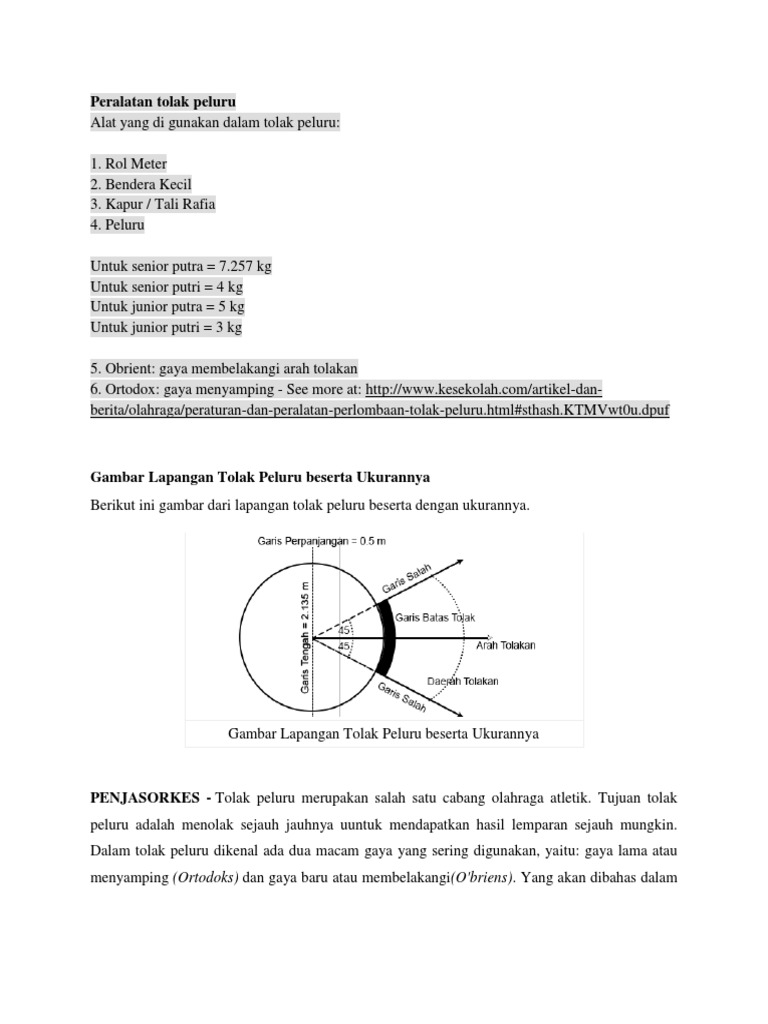 ukuran lapangan tolak peluru | PENJAS ORKES