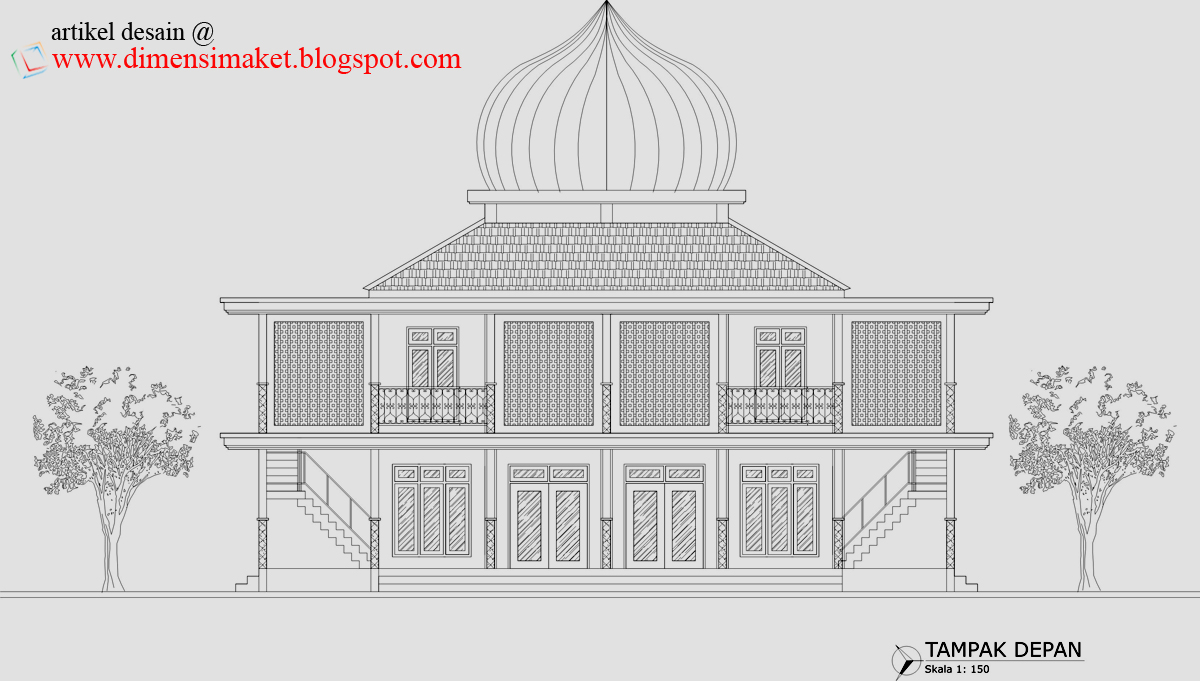 Dimensi Maket Arsitektur : Desain Masjid & Musholla 002 : Contoh Gambar Desain Masjid