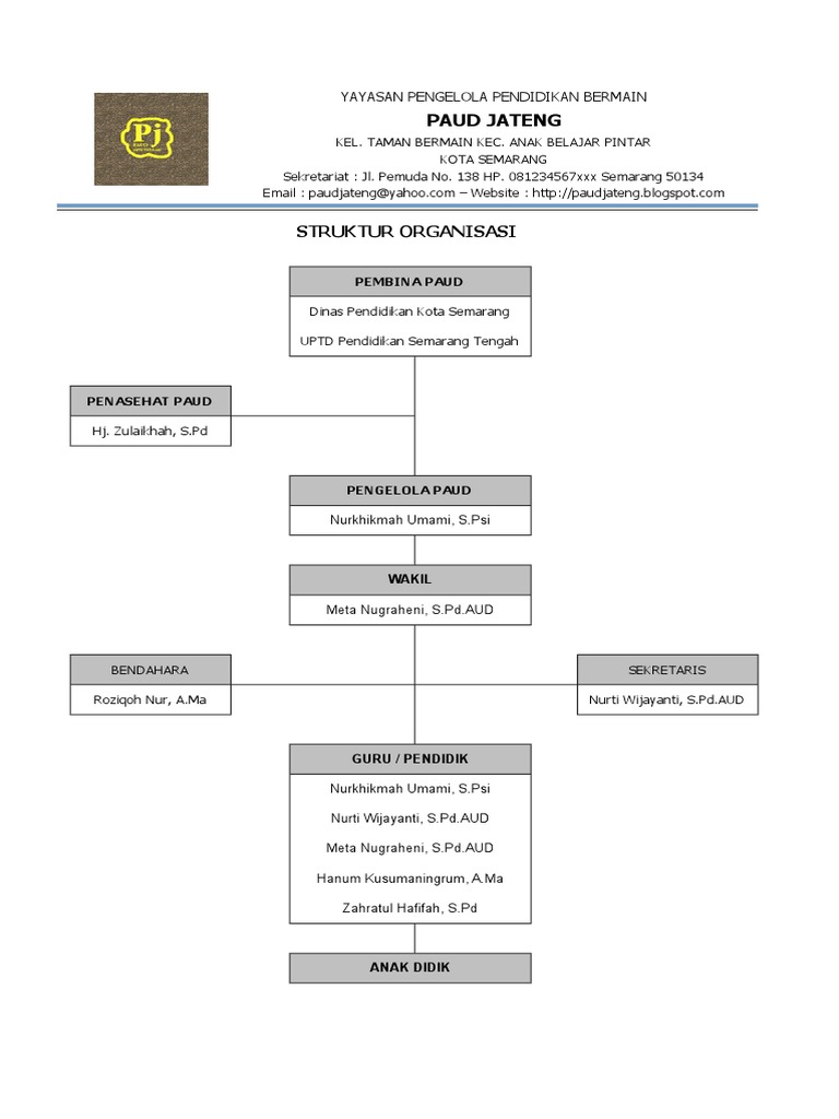 Contoh Struktur Organisasi PAUD Lengkap dengan Tupoksi Tugas - PAUD JATENG