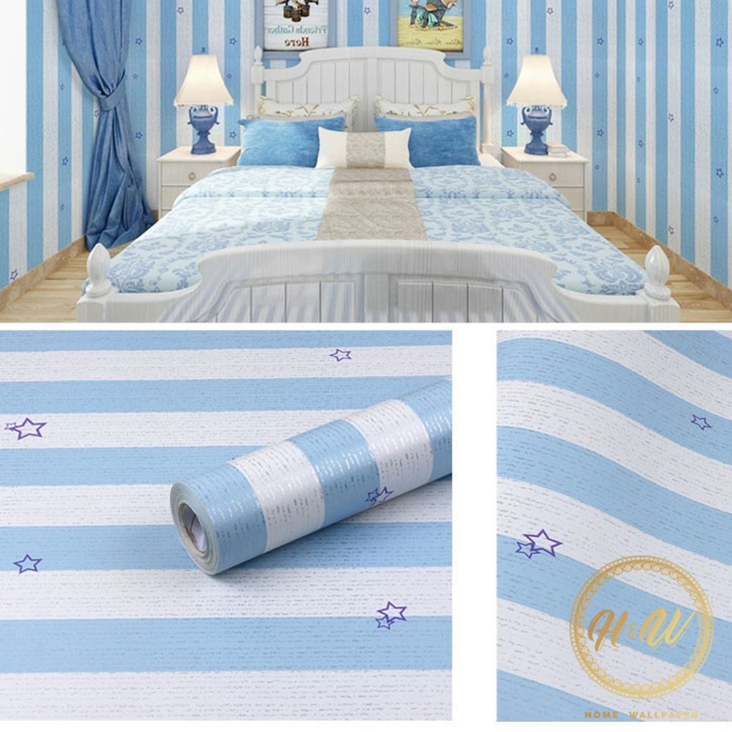 Wallpaper dinding salur biru | Shopee Indonesia