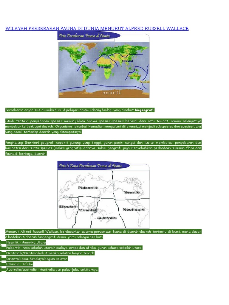 EKO PRIYO HARTANTO: PERSEBARAN FAUNA DI DUNIA MENURUT ALFRED RUSSEL WALLACE 1876