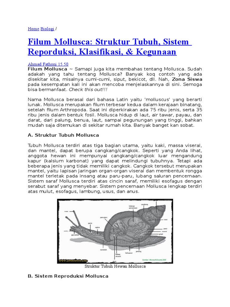 Ciri-ciri, Reproduksi, Klasifikasi Dan Peranan Mollusca - Ilmu Pengetahuan