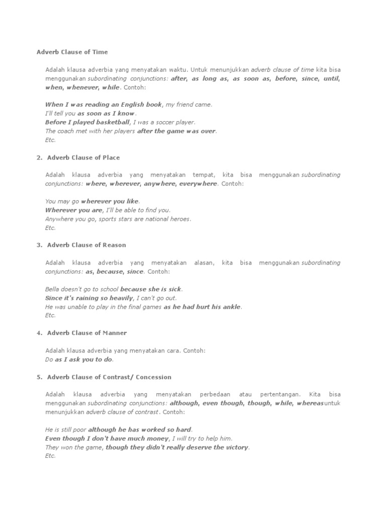 Adverbial Clause : Pengertian, Fungsi, Bentuk Dan Contoh Dalam Kalimat Bahasa Inggris | Teks.Co.Id