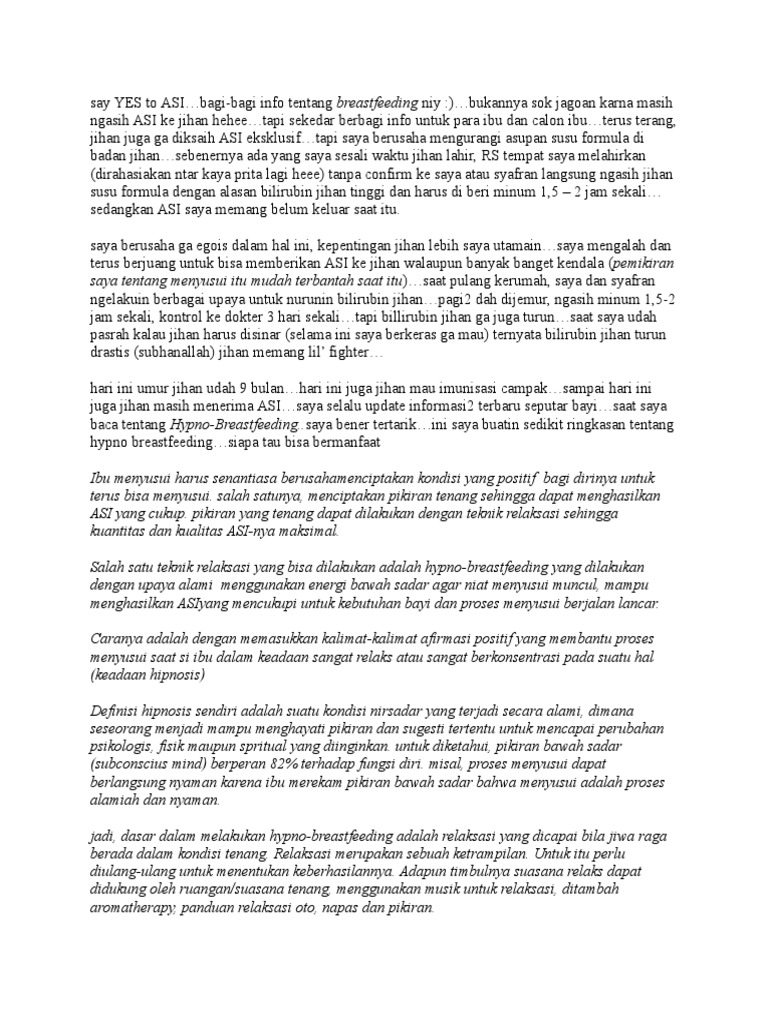 Asosiasi Ibu Menyusui Indonesia - AIMI ASI » Hypnobreastfeeding: Solusi Menyusui yang Jitu