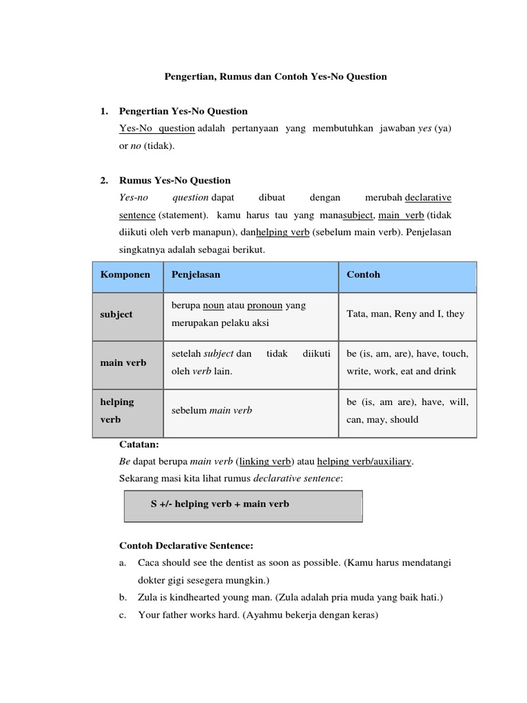 DOC) Pengertian, Rumus dan Contoh Kalimat Yes-No Question | Ricky Sumbayak - Academia.edu