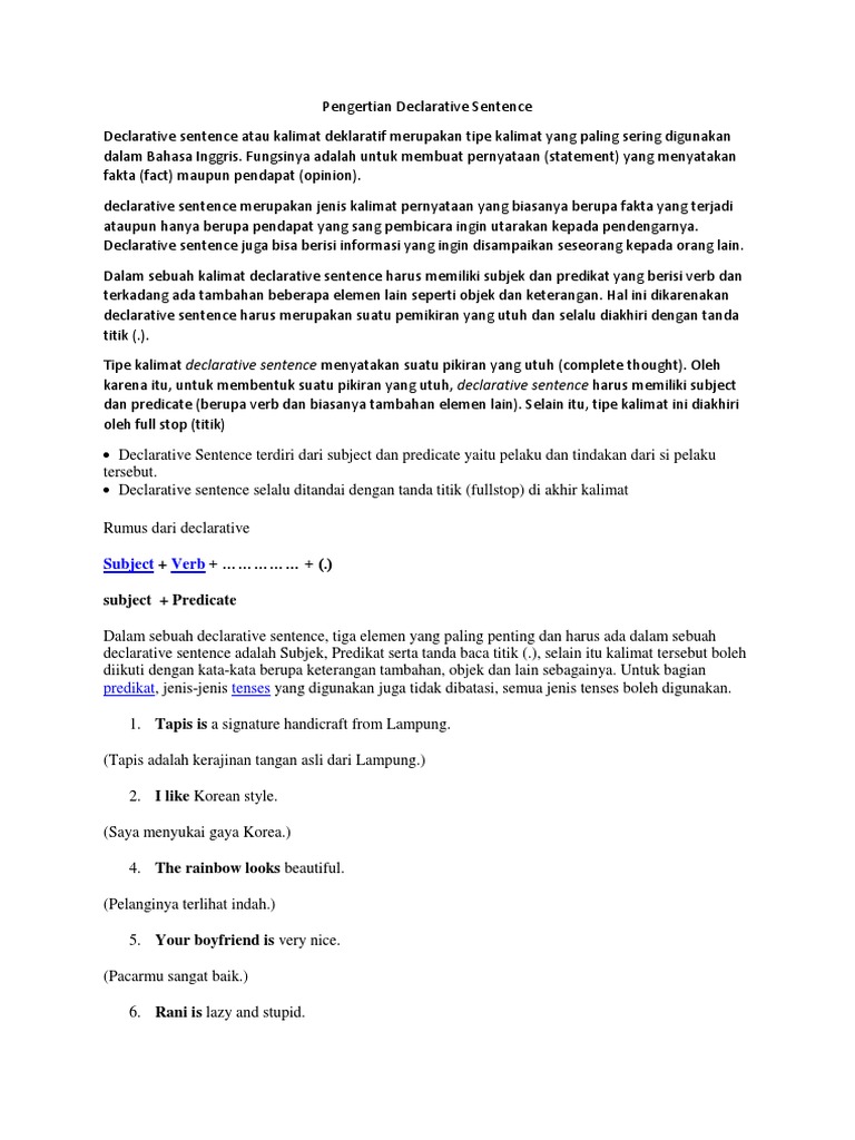 Sentences: Apa itu Declarative Sentence? | Sederet.com