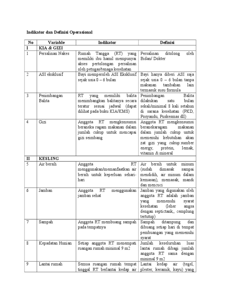 Indikator Dan Definisi Operasional PHBS