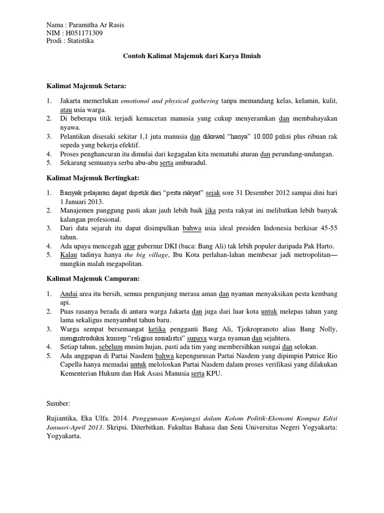 Contoh Kalimat Majemuk Dari Karya Ilmiah