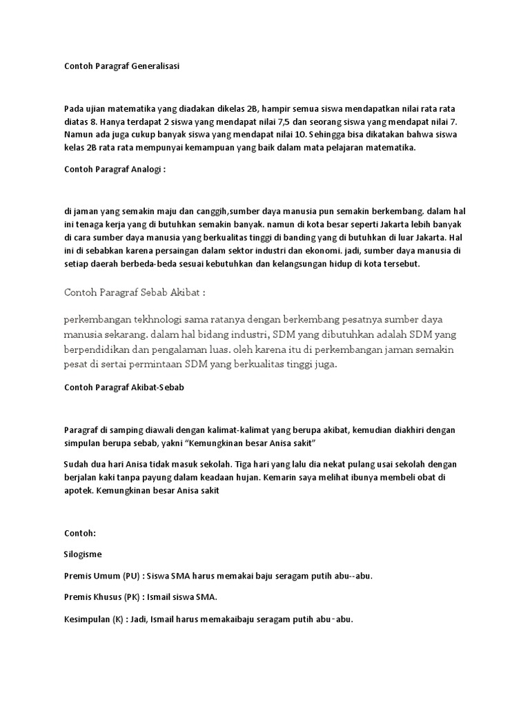 PDF) Contoh Paragraf Generalisasi | Bentder Sugondo - Academia.edu