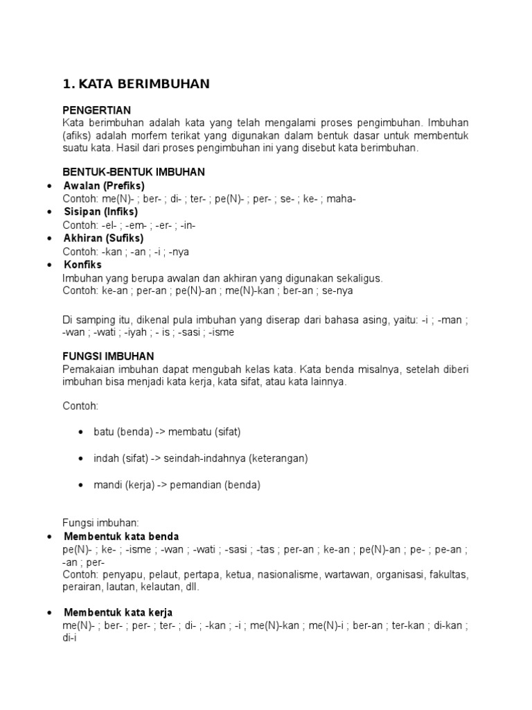 Kata Imbuhan Dalam Bahasa Indonesia