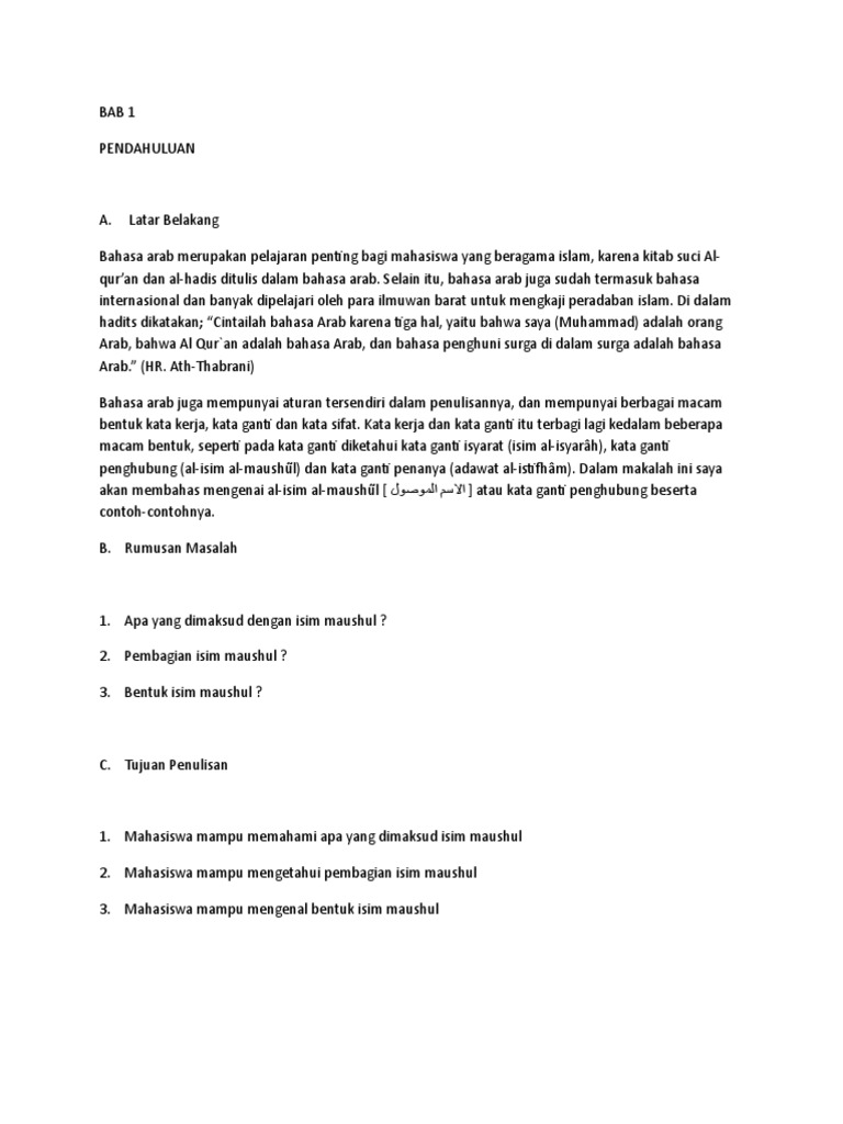 ISIM MAUSUL.docx - PENDAHULUAN Bahasa arab merupakan pelajaran penting bagi mahasiswa yang beragama islam karena kitab suci Al-qur\u2019an dan al-hadis | Course Hero