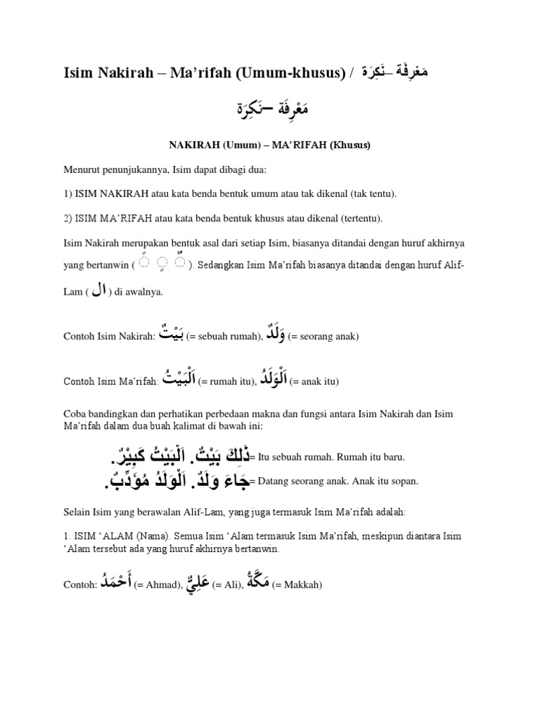 PDF) PEMBAHASAN ISIM NASIRAH DAN ISIM MA’RIFAH DALAM BAHASA ARAB