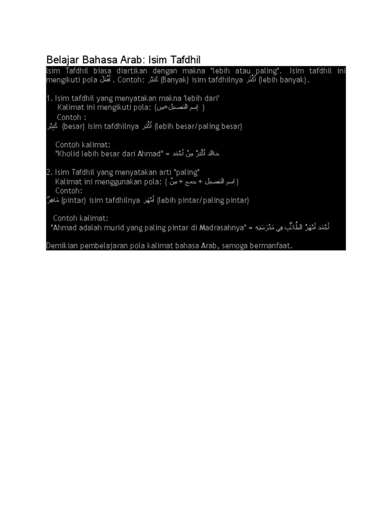 Pengertian Isim Tafdhil ( ) dalam Ilmu Nahwu | Arabunaa (Belajar Bahasa Arab Online)