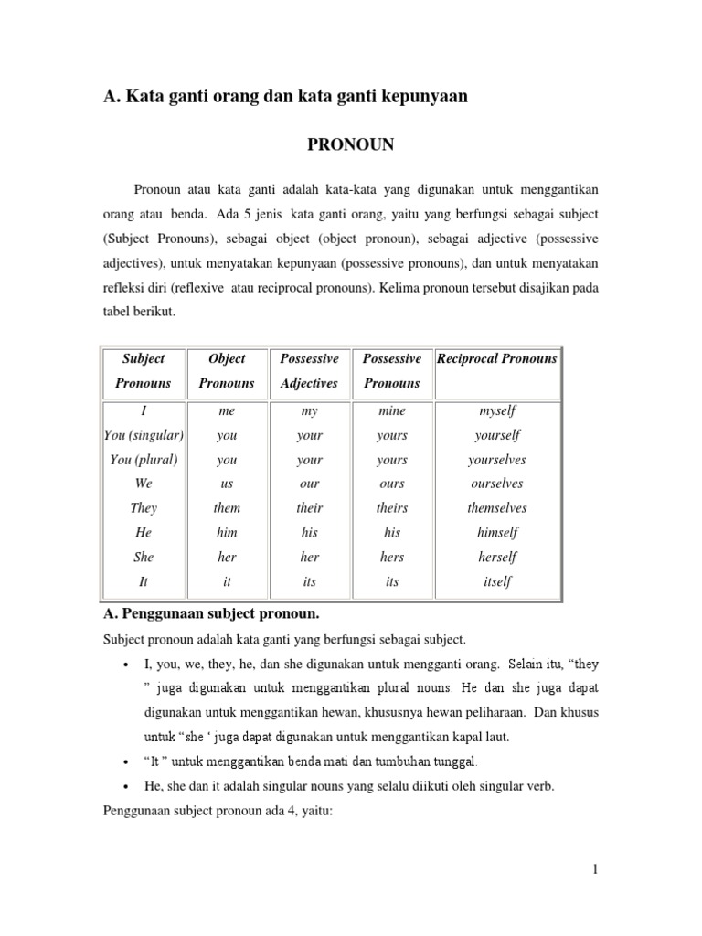 DOC) Pronoun (Kata Ganti Benda | Hanifa Alwazna - Academia.edu
