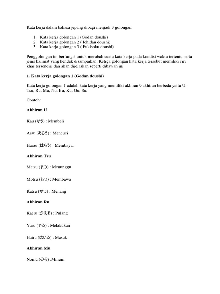 Kata kerja dalam bahasa jepang dibagi menjadi 3 golongan.docx