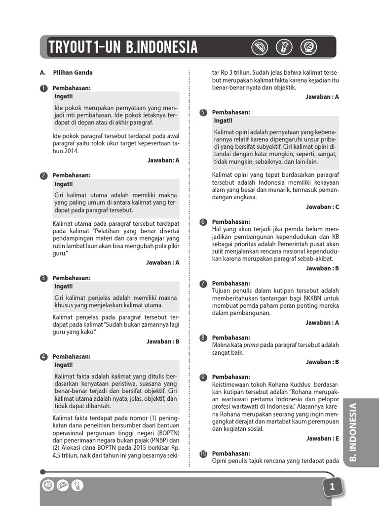 Tryout 1-Un B.Indonesia: A. Pilihan Ganda