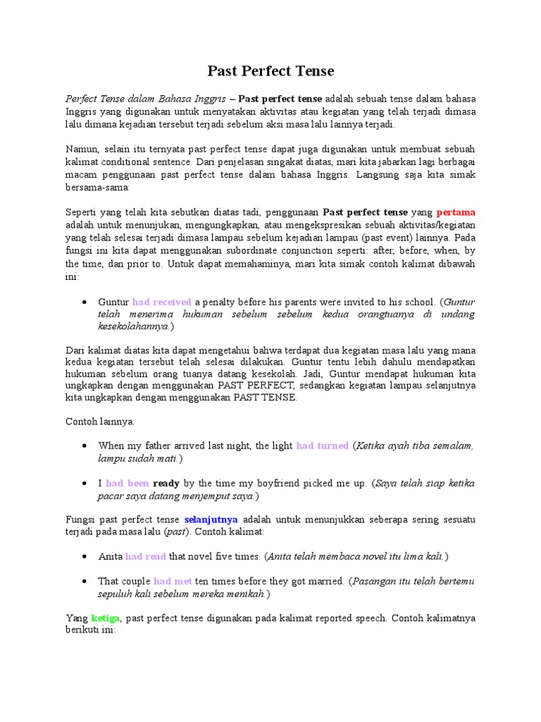 PAST PERFECT TENSE PENJELASAN DAN CONTOH - Kampung Inggris Pare